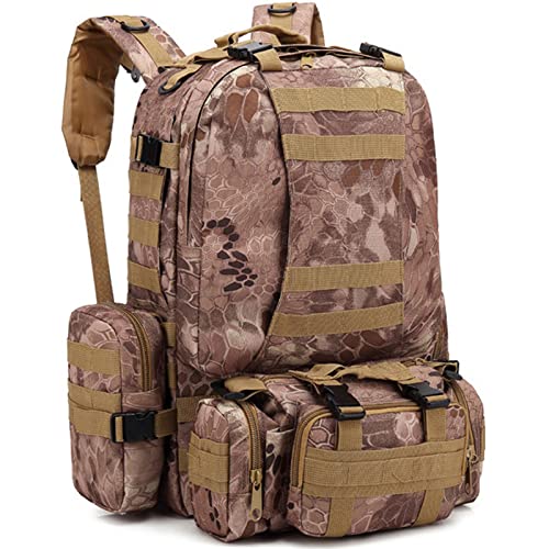 QMMD Mochila Táctica Impermeable 55L,Mochilas Militares Tácticas, Gran Capacidad Mochila, Táctica Mochila Molle Mochilas Gran Paquete de Asalto, para Senderismo, Caza,Python KhakiCasa